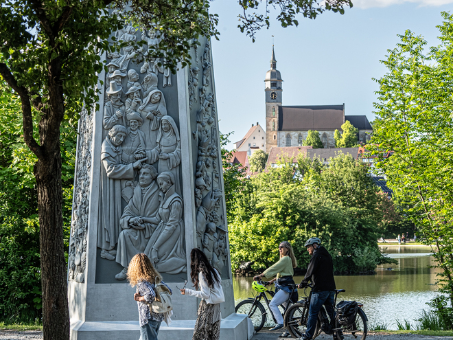 Das Denkmal "Gesichter des Bauernkriegs" des Künstlers Peter Lenk